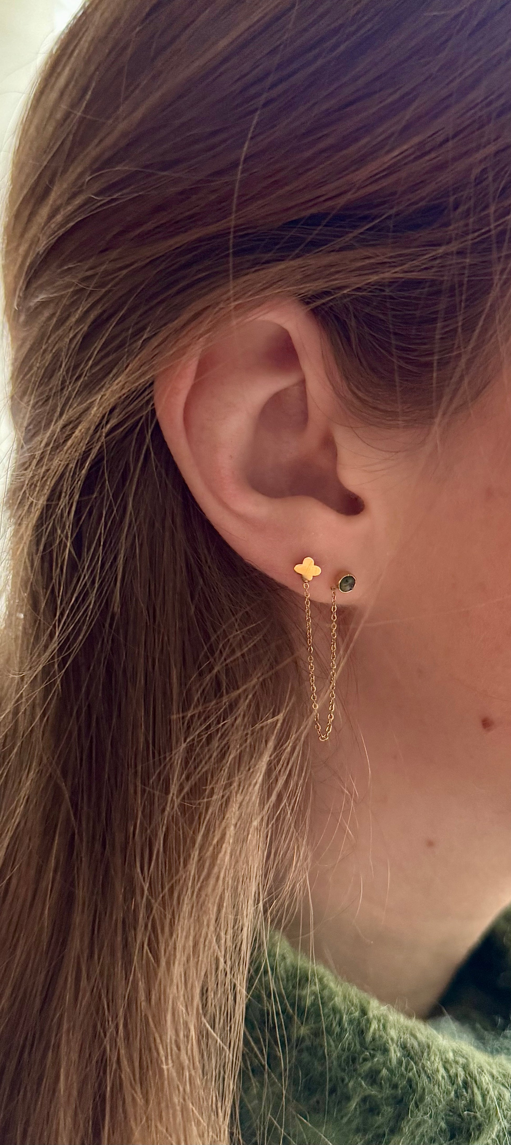 Mono boucle trèfle et couleur verte.